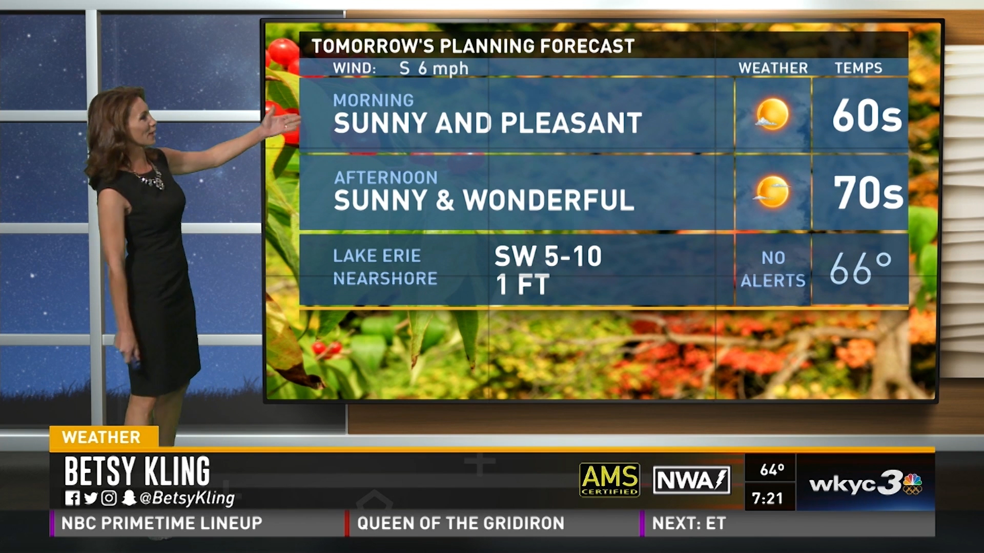Production staff designed an application that allows newscast producers to select from different time and weather scenes to match current conditions.